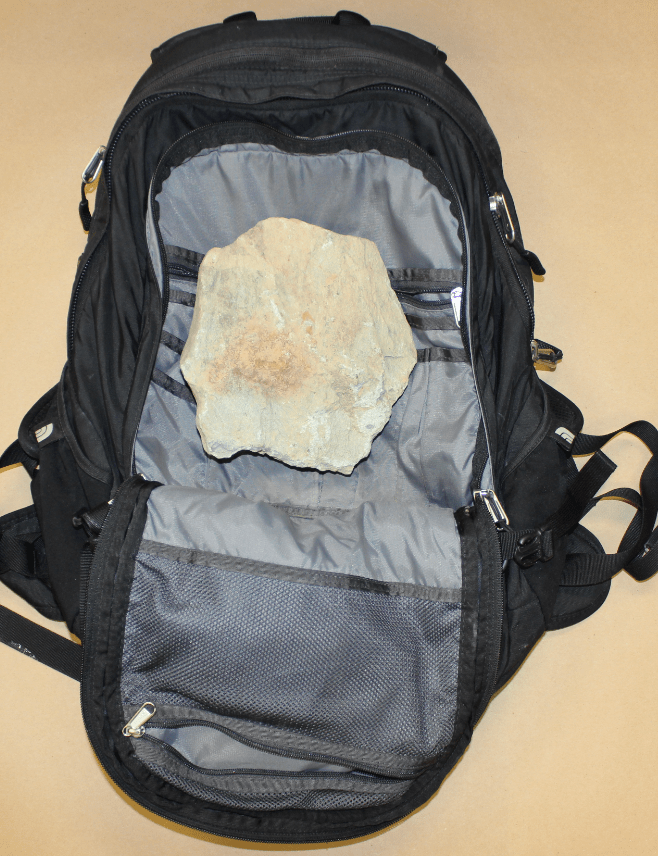 backpack and rock